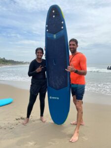 We reached pondicherry and checked in our hotel with a beach view. Enrolled at @kallialay_surf_school which was on serenity beach. On our first day at the surfing school we practiced the basics of surfing on land like lying down on the surfboard , the leg and hand movements that would help us get up on the board and finally the stance we needed to take to balance ourselves on the surfboard. Next, we had to implement that on the water. All I could manage on the first day was lying on my body on the centre of the surf board. Every attempt I made to get up, ended with me falling into the rough, salty water. After every round, we had to carry our surfboards and walk away from the shore into the water. And start again. And fall again. I wondered if it was meant for me. However I decided to go for another session and today was my second day at surfing. We got some tips from my instructor as to how to get up in a swift manner. I tried to implement that on water, but failed . Every time I was ready, I would hear my instructor @samai_de_kallialay motivate me by saying “up” “up” “up” until finally, in one of the attempts I managed to get up on the surfboard. Though I am no where closer to the ideal way of doing it, there was a small progress, which is important. The mantra is to never give up, no matter what the odds are. If you get tired, learn to rest. Not to quit- Banksy